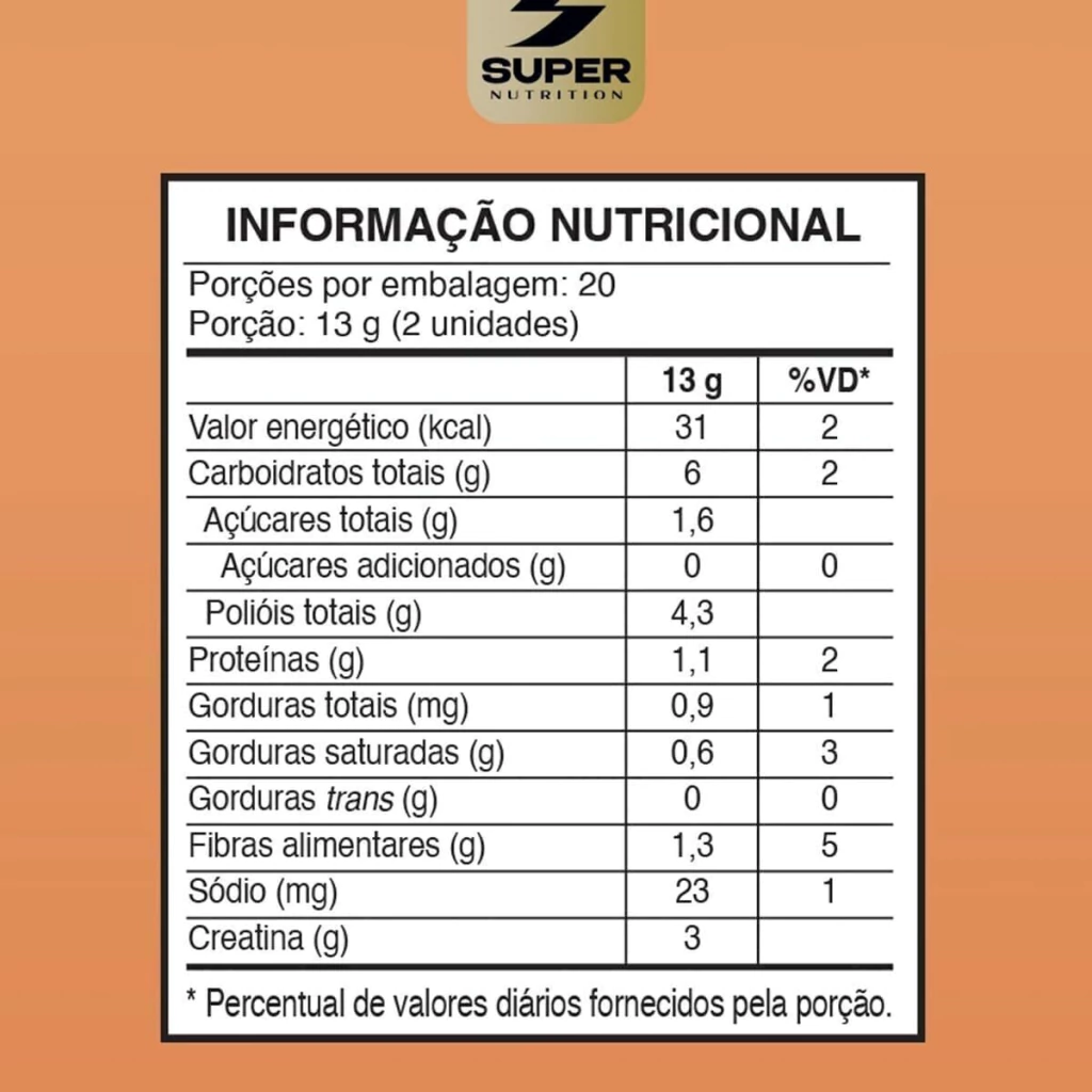 INGREDIENTES: ÁGUA, LEITE INTEGRAL EM PÓ E/OU LEITE INTEGRAL, CREATINA MONOHIDRATADA; EDULCORANTES: SORBITOL, ISOMALTE, SUCRALOSE; ESPESSANTES:POLIDEXTROSE, GELATINA; ESTABILIZANTES: PECTINA CÍTRICA, CITRATO DE SÓDIO; REGULADOR DE ACIDEZ: BICARBONATO DE SÓDIO; AROMATIZANTE: AROMA IDÊNTICO AO NATURAL DE CARAMELO; CONSERVANTE: SORBATO DE POTÁSSIO.